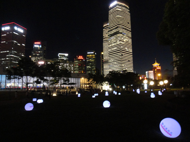 然後綠地上面放了很多兼做打廣告的燈球,還挺有趣~一下返回童真了~~玩得好開心~~拿來隨便搭放,當球踢什麼的~~同行的室友都無奈了……